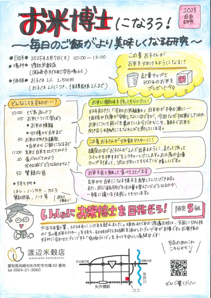 自由研究企画「お米博士になろう!」をこの夏実施します。