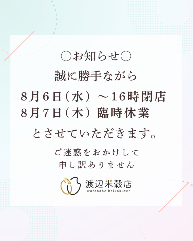 令和7年8月7日(木) 臨時休業